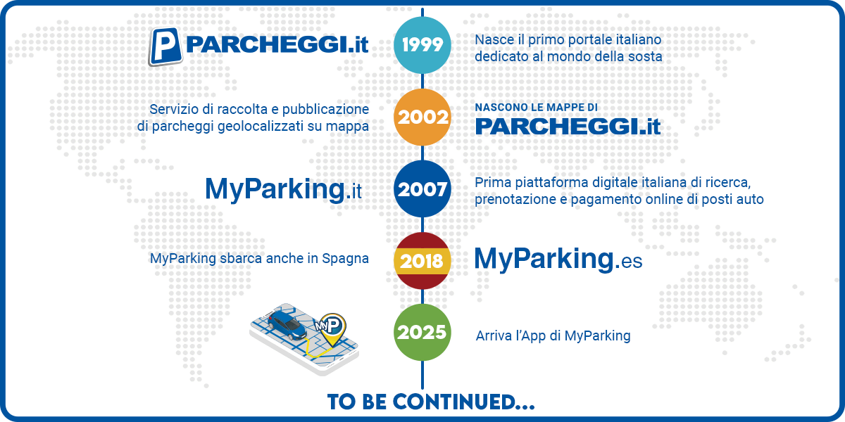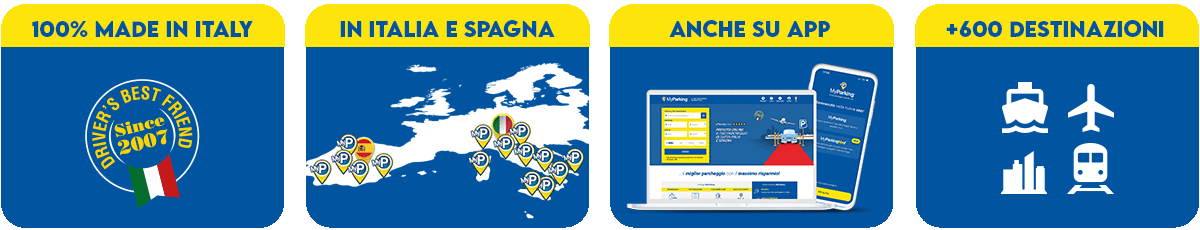 MyParking è il primo servizio web italiano dedicato a ricerca, prenotazione e pagamento online di parcheggi. Dal 2007, rendiamo semplice ed economico trovare un parcheggio sicuro in aeroporti, porti, stazioni ferroviarie e centri città, trasformando la sosta in una fase programmabile dello spostamento.