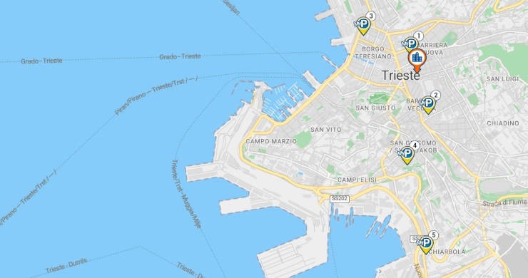 La mappa di MyParking fornisce informazioni precise sulla collocazione dei parcheggi a Trieste e consente di calcolare il percorso migliore per raggiungerli o per raggiungere la destinazione dopo aver parcheggiato. Ad esempio, potrai scoprire in pochi click dove parcheggiare a Trieste vicino a Piazza Unità d'Italia, uno dei luoghi più iconici della città, e prenotare per garantirti il posto auto. Invece, se devi viaggiare in treno potrai scoprire quali sono i parcheggi vicino a Stazione Trieste.